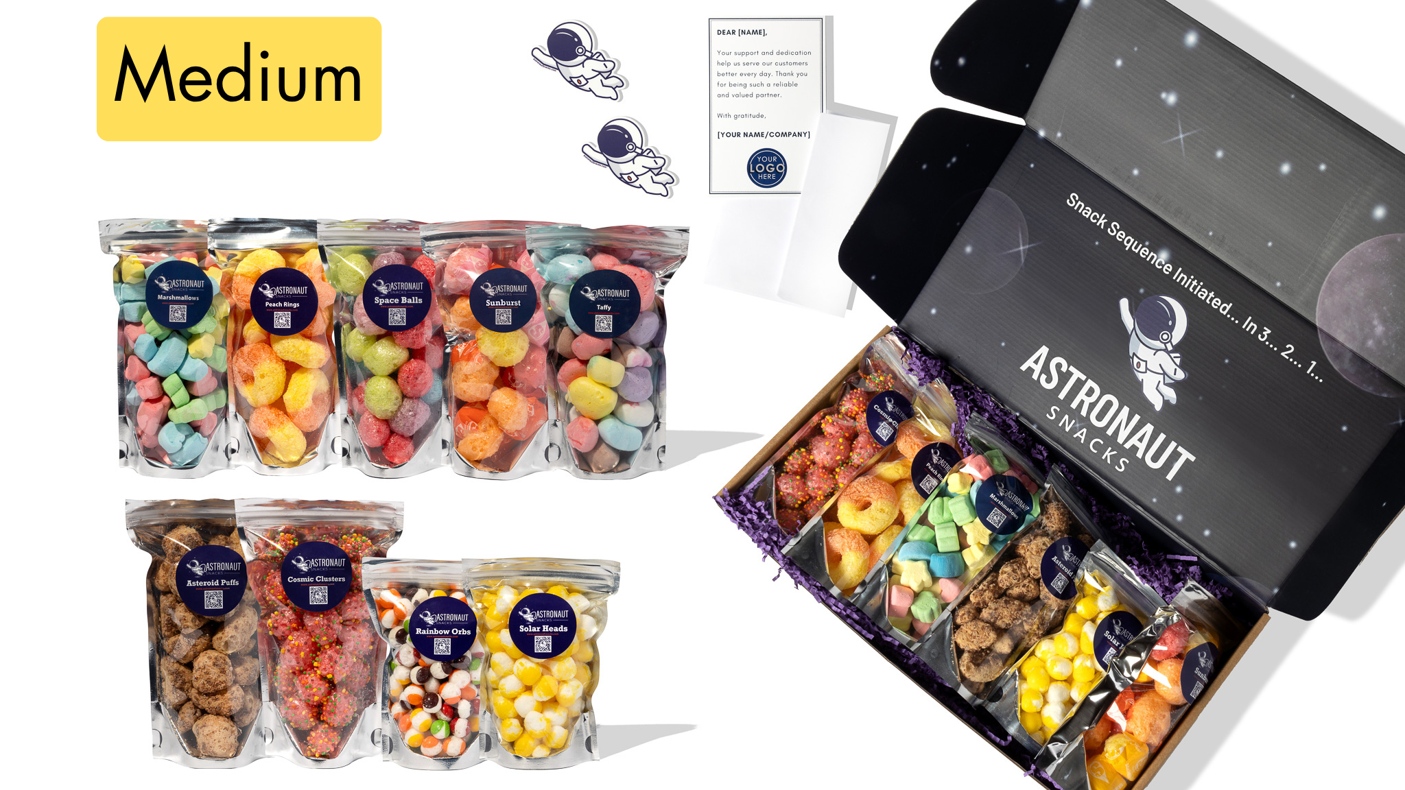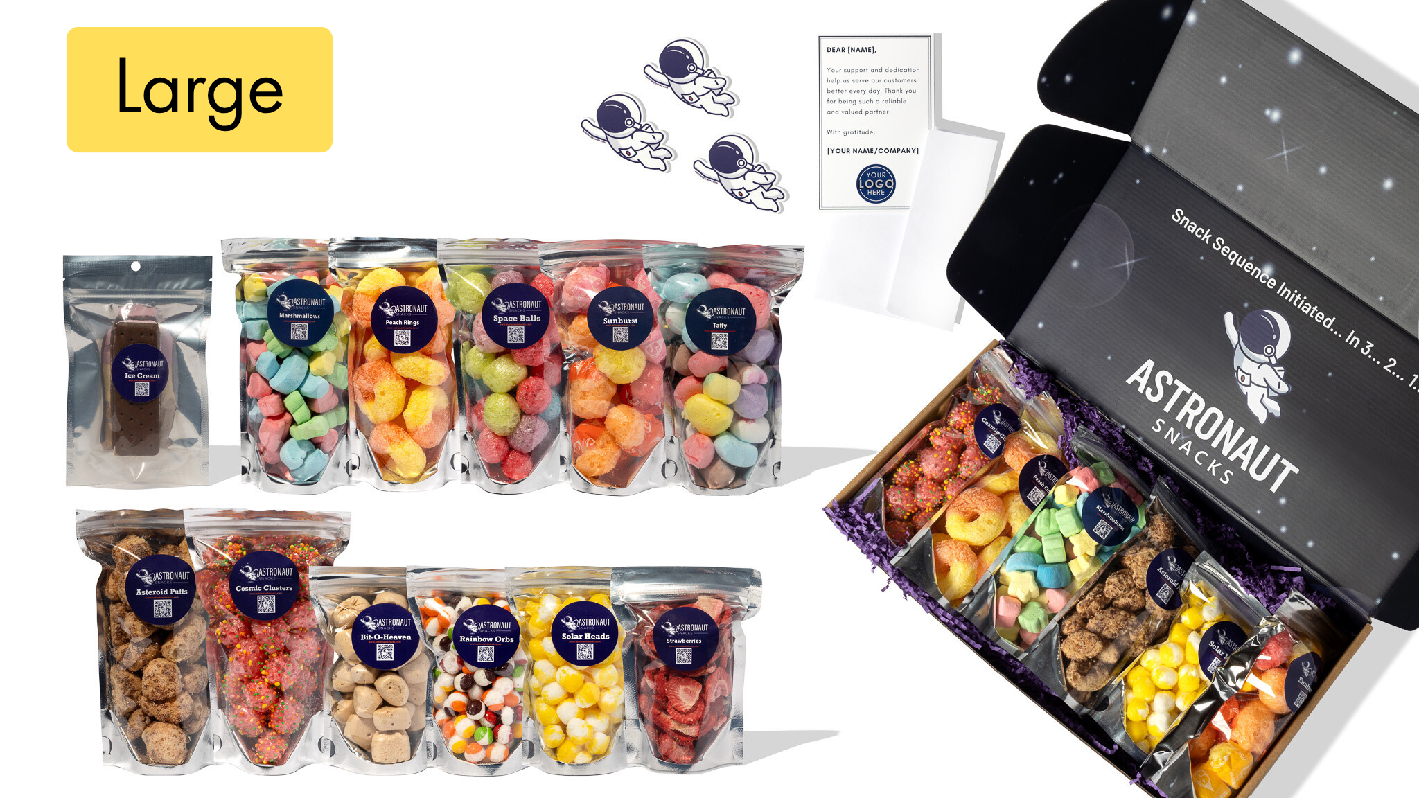 Delight your clients and employees with our premium freeze-dried snack gift boxes. Our two different sized boxes are perfect for client/vendor or team member appreciation!